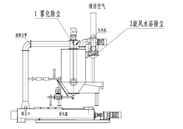 5、除塵采用三級(jí)除塵過程,使消化器中的石灰粉塵及蒸汽溶于水中。